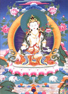 Как бодхисаттву, сопровождающего будду Амитабху, его изображают в положении стоя, светло-зелёного цвета; он держит лилию, которая символизирует отказ и отдаление от беспокоящих эмоций.